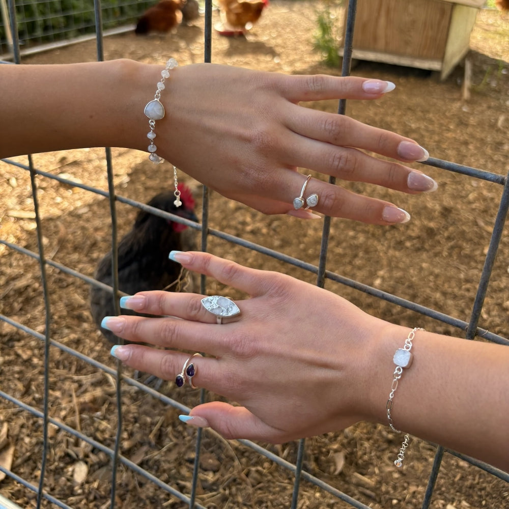Rainbow Moonstone Teardrop Statement Ring in Gold and Silver