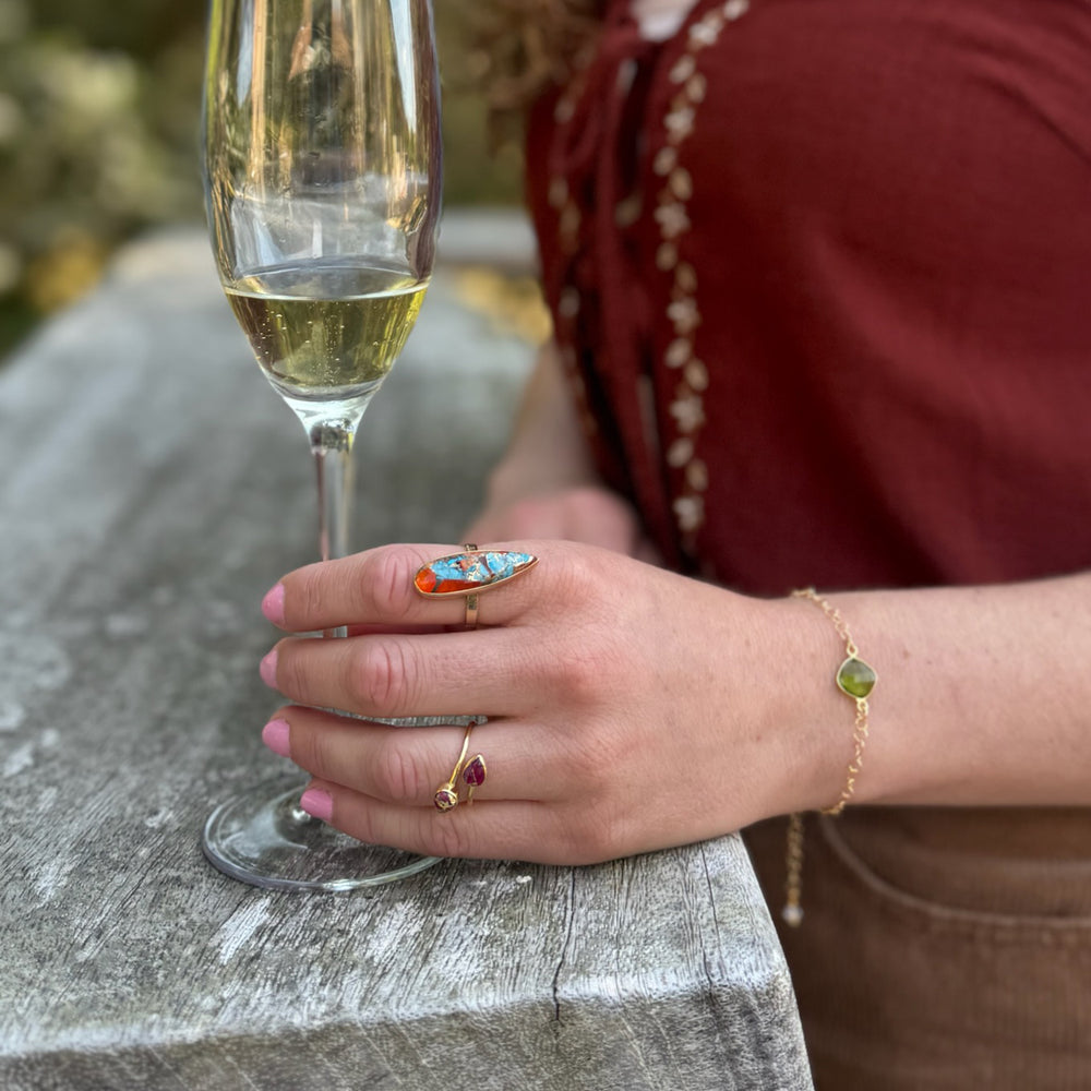 Double Teardrop Stone Wrap Ring in Ruby Mojave