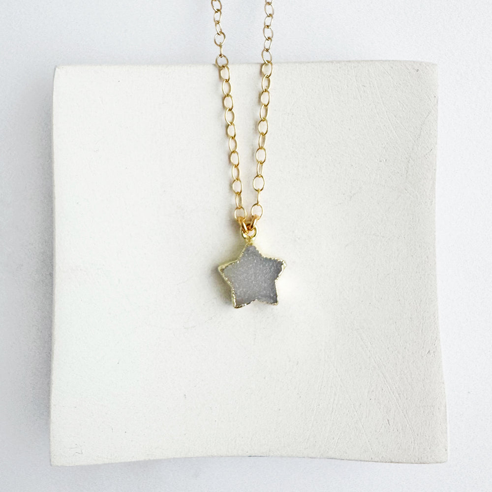 Gray Druzy Sunburst Statement Earrings in Brushed Gold