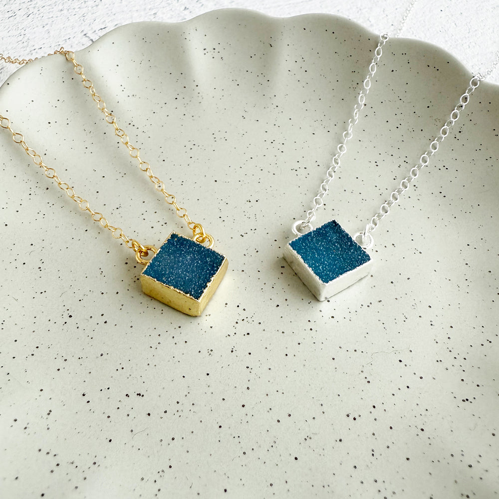 Blue Druzy Cutout Teardrop Earrings in Brushed Gold