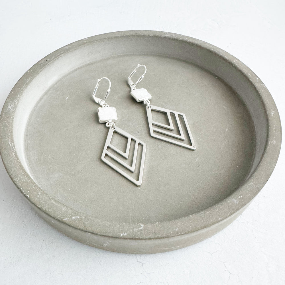 White Druzy Layered Diamond Statement Earrings in Silver