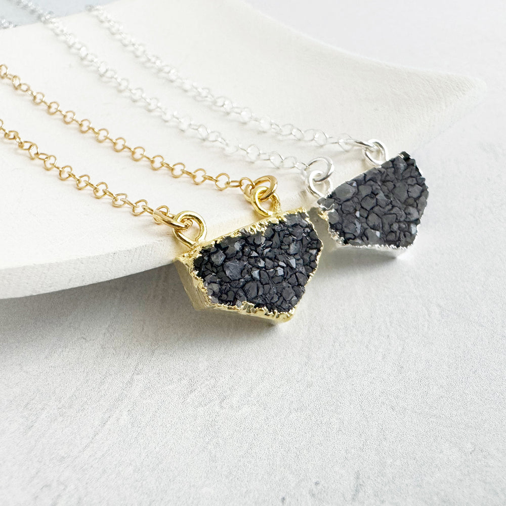 Small Gray Druzy Chevron Necklace in 14k Gold Filled and Sterling Silver