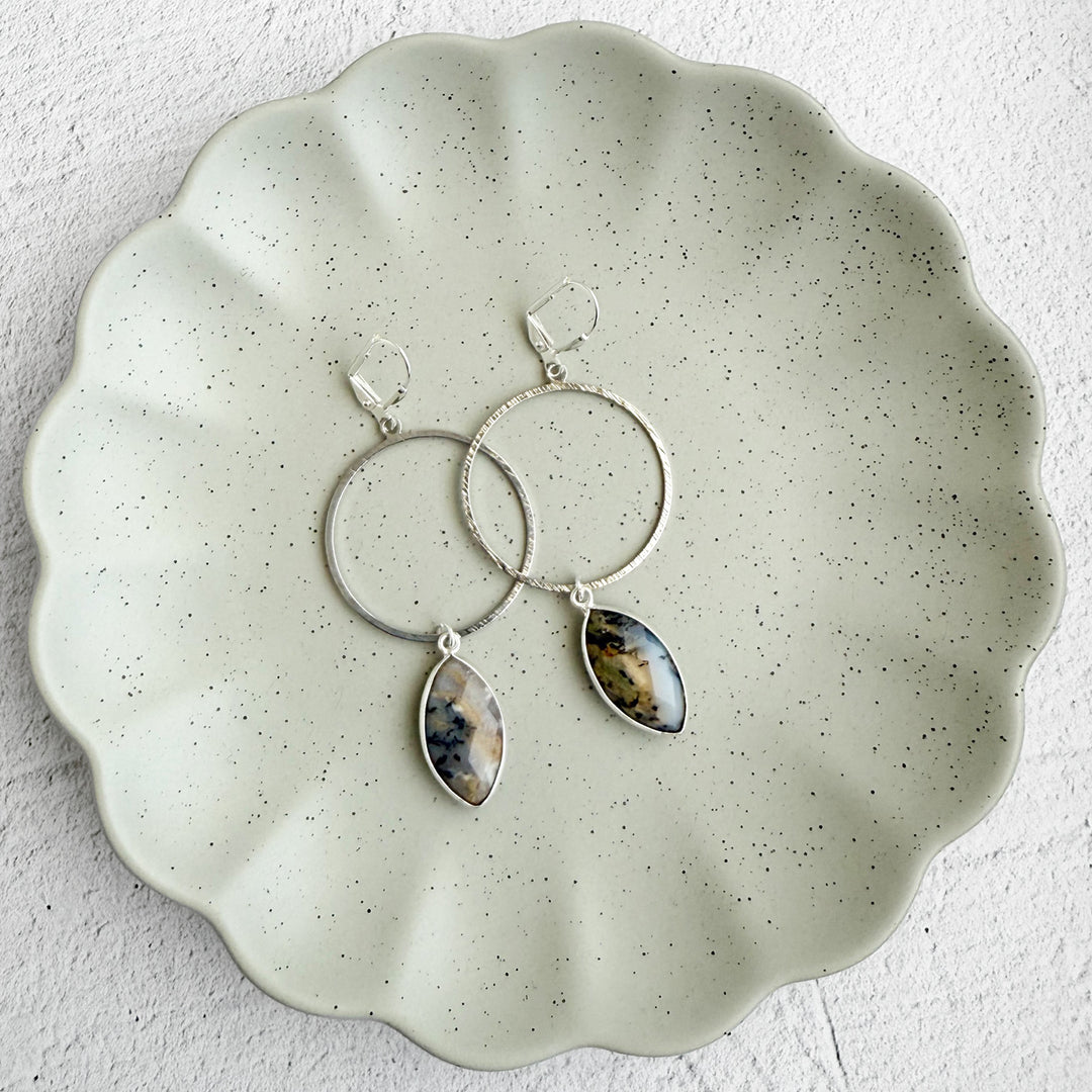 Teal Mojave and Hammered Marquise Dangle Earrings in Silver