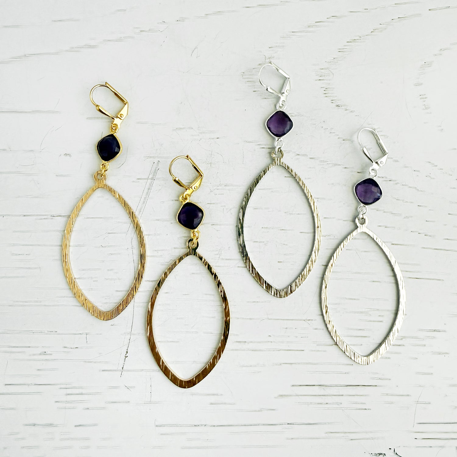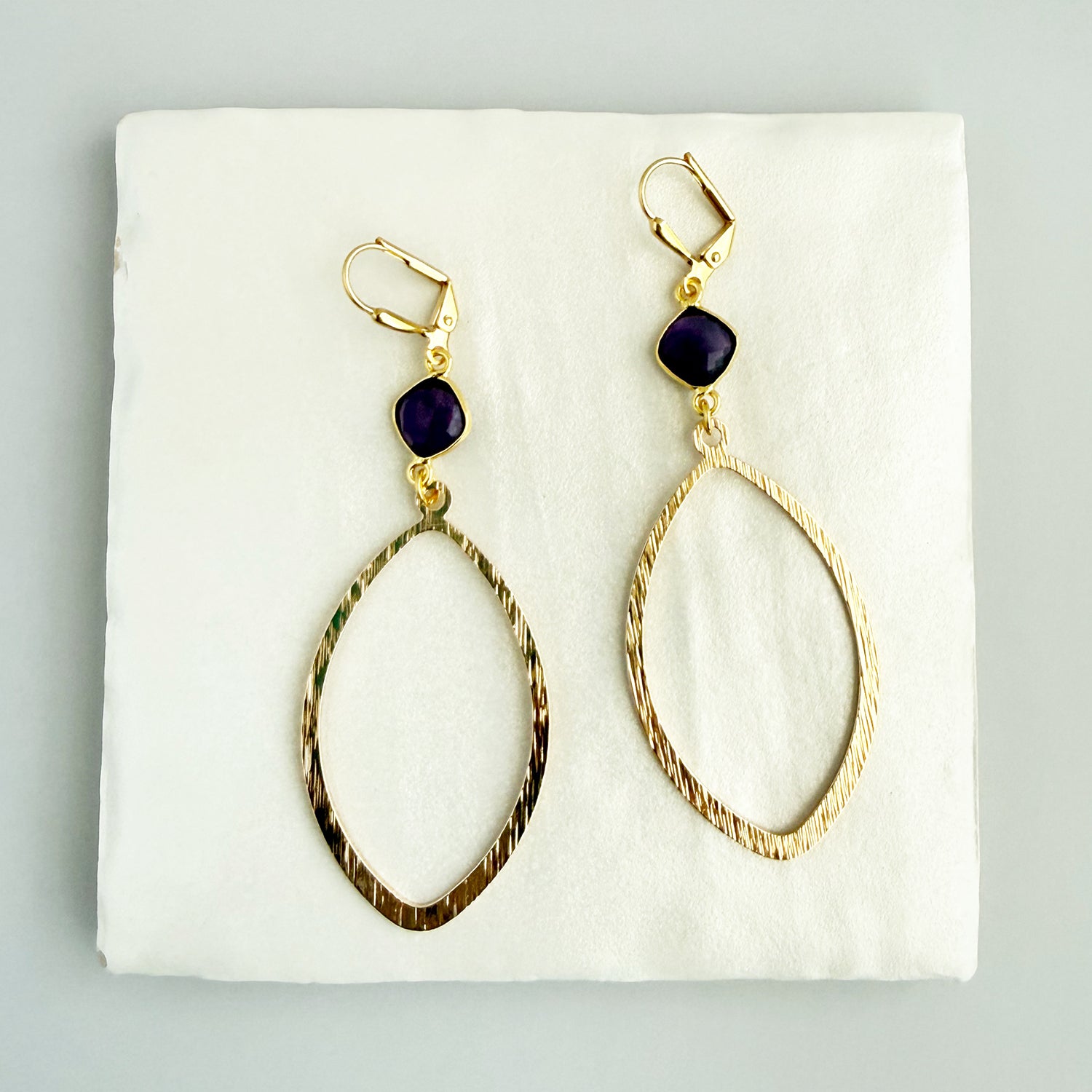 These earrings command attention without trying. The marquis cut creates a lengthening effect that's universally flattering, while the brushed metal finish keeps things modern and wearable. Natural amethyst brings that touch of intentionality. You're not just accessorizing. You're amplifying your energy.