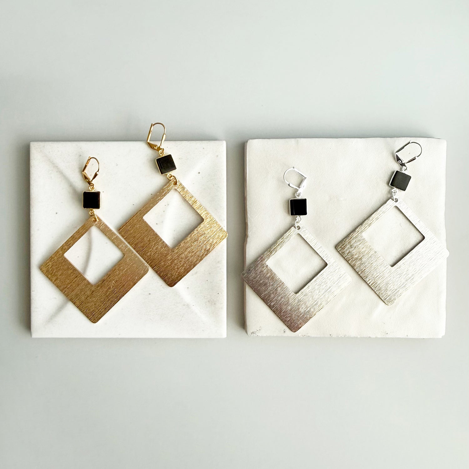 Bold and unapologetic, these oversized earrings bring instant impact with deep black onyx and softly textured brushed metal. A statement that feels powerful yet polished.
