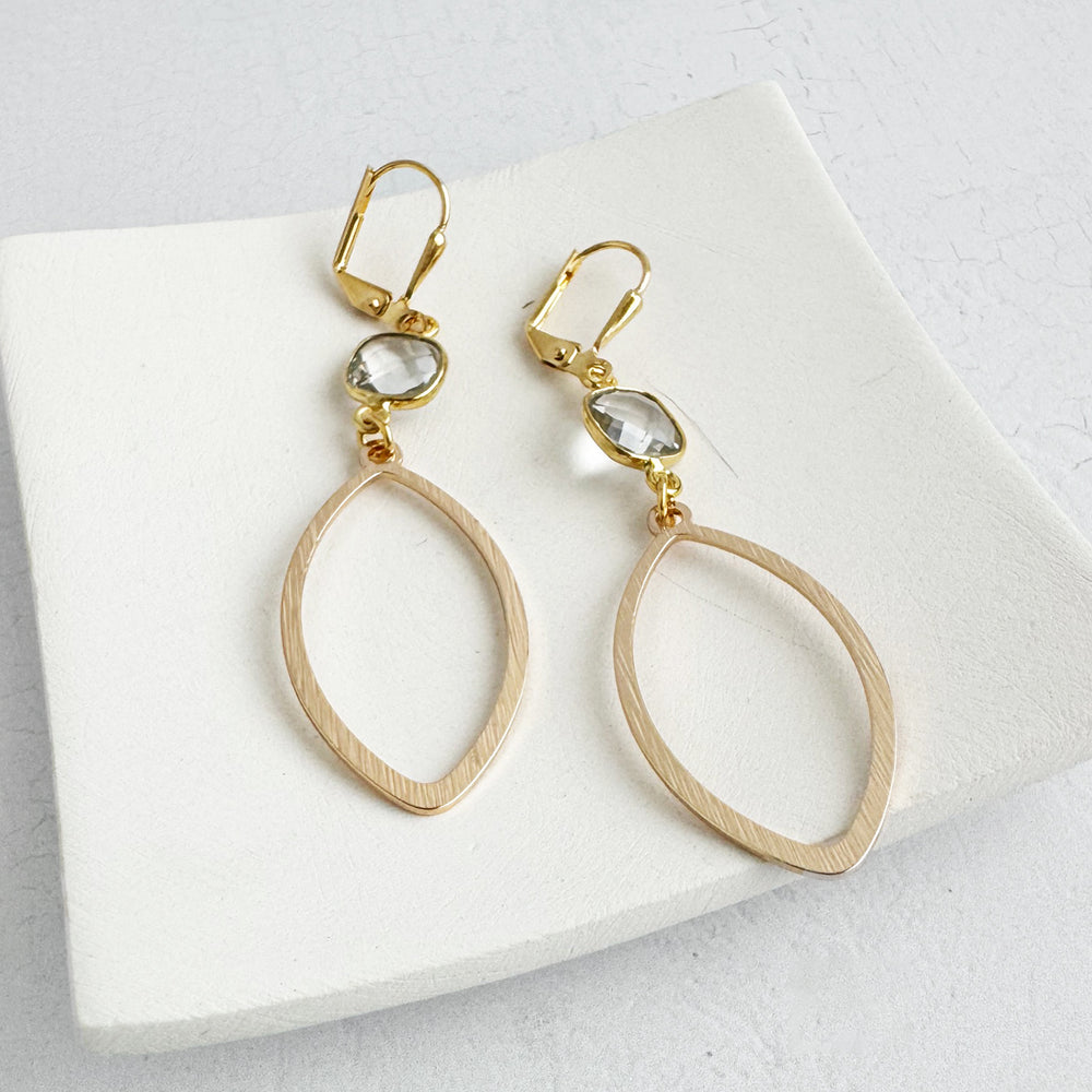 Clear Stone Marquise Dangle Earrings in Brushed Gold