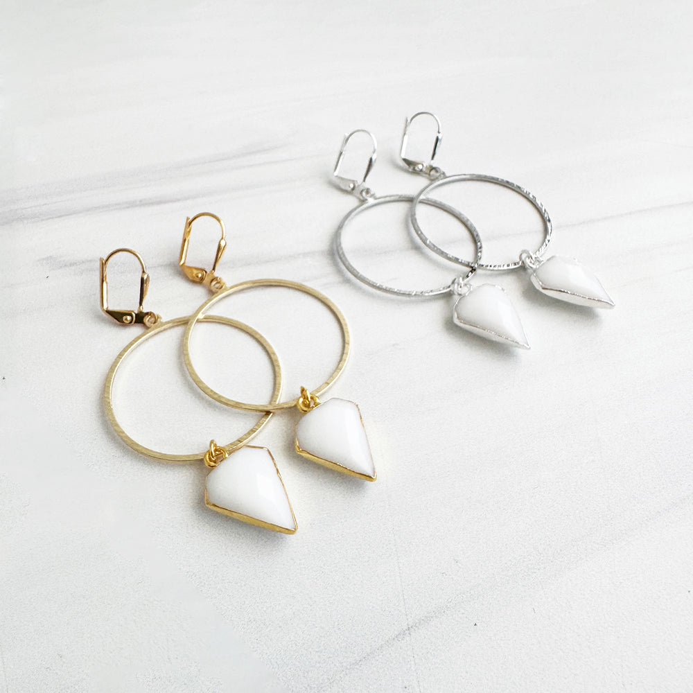 White Agate Shield Hoop Dangle Earrings