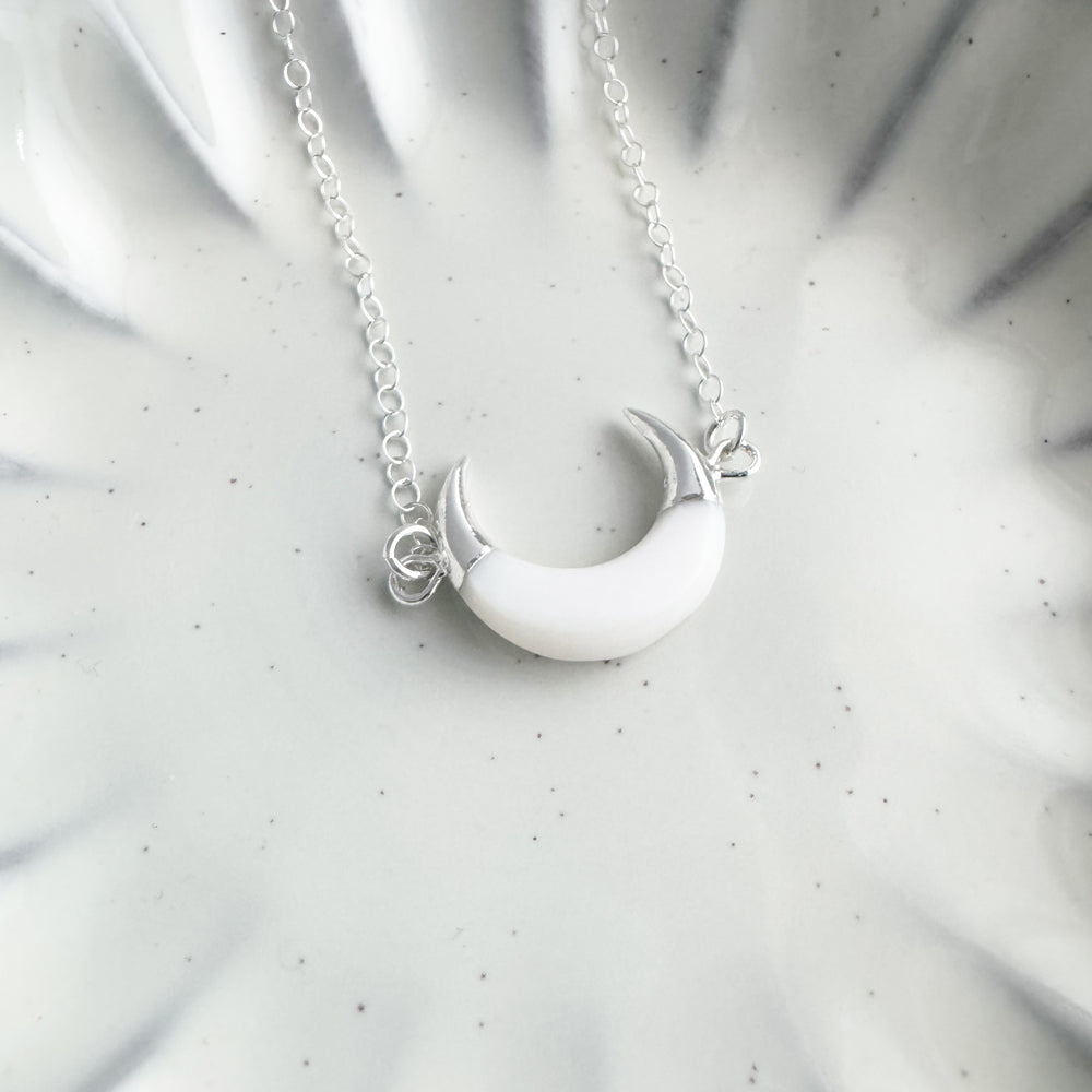 White Shell Crescent Necklace in Sterling Silver
