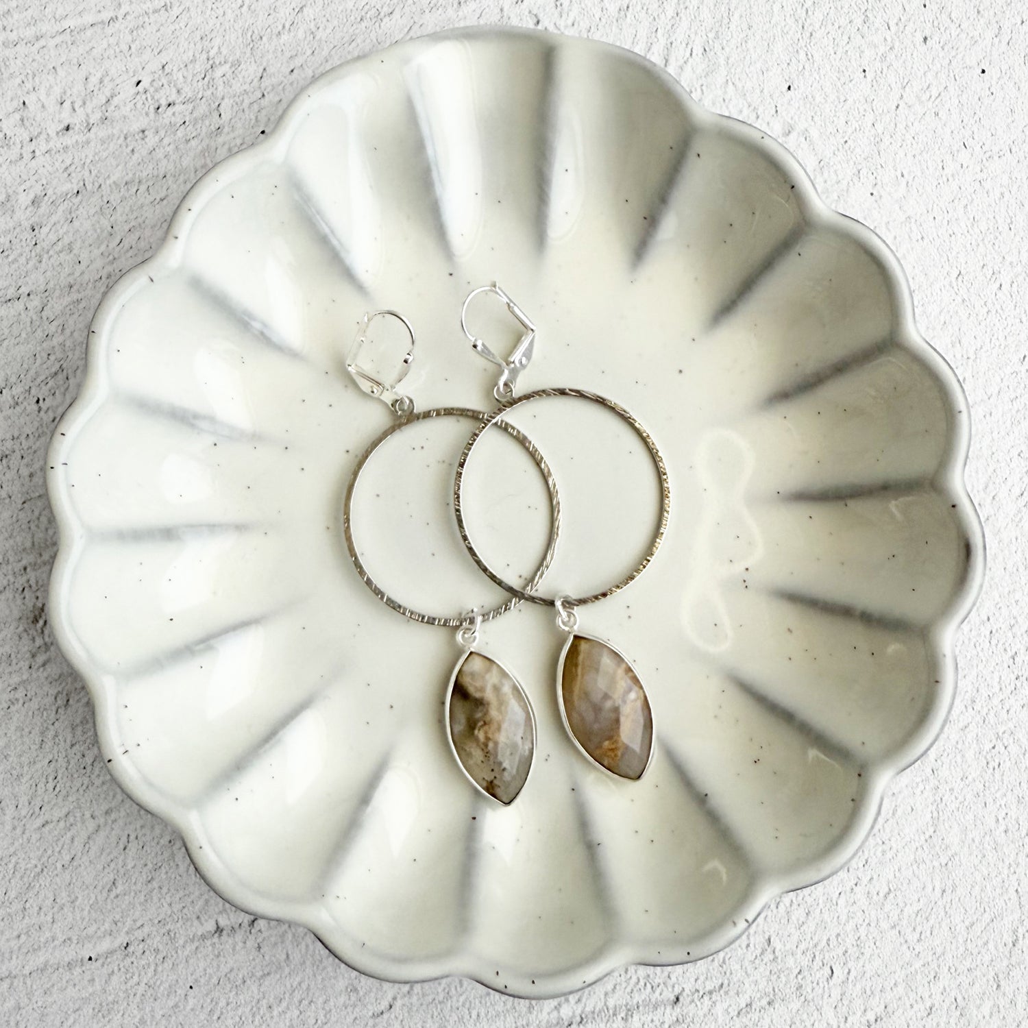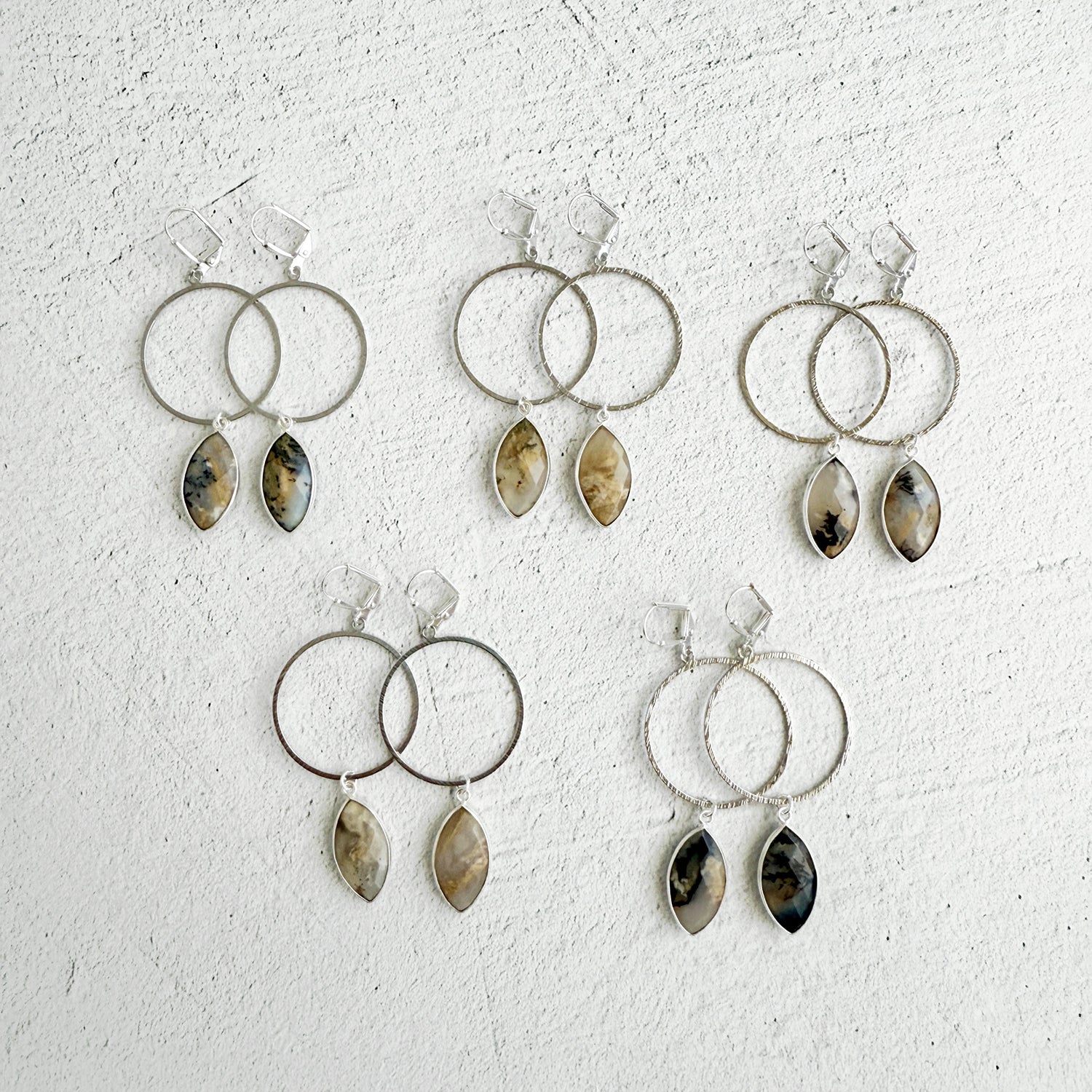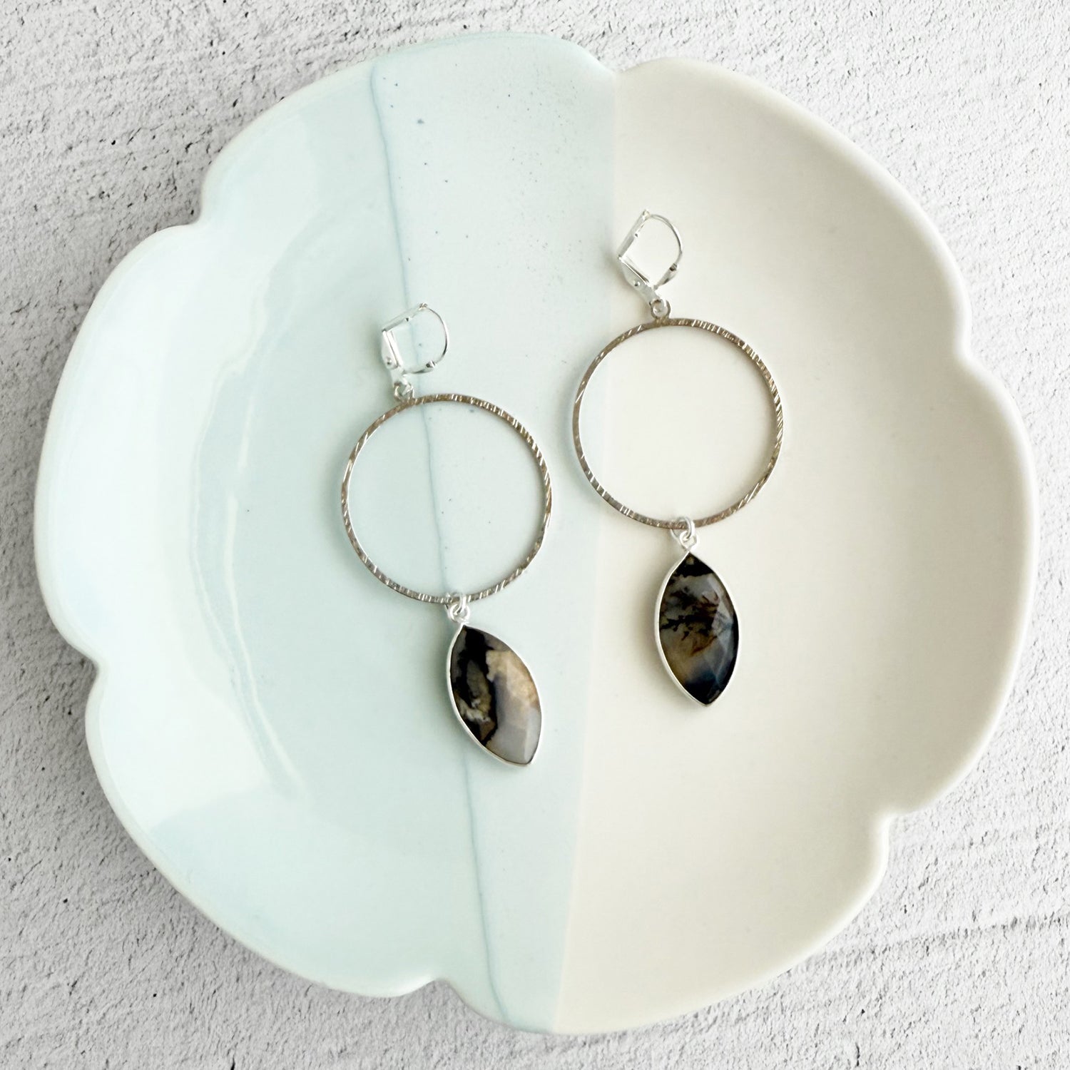 Gleaming Australian opals shimmer with rainbow fire in these marquise-cut hoop earrings. Set in brushed silver, they bring a natural yet refined touch to your everyday style.