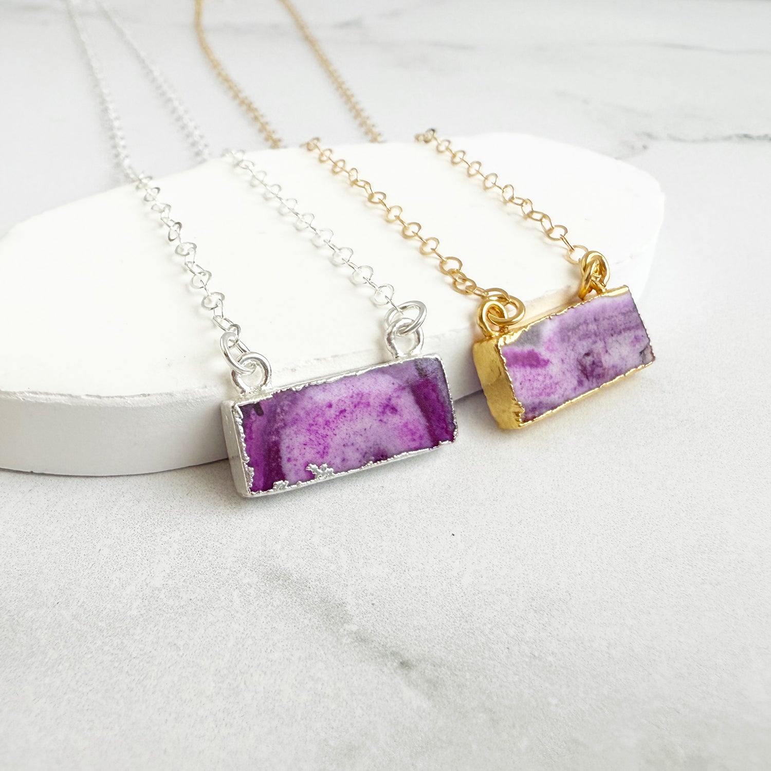 Radiant and full of texture, the Pink Solar Quartz Necklace shines with natural crystal detail and soft blush tones. Set in gold or silver, it's the perfect mix of feminine charm and organic beauty - made to stand out, yet easy to wear every day.