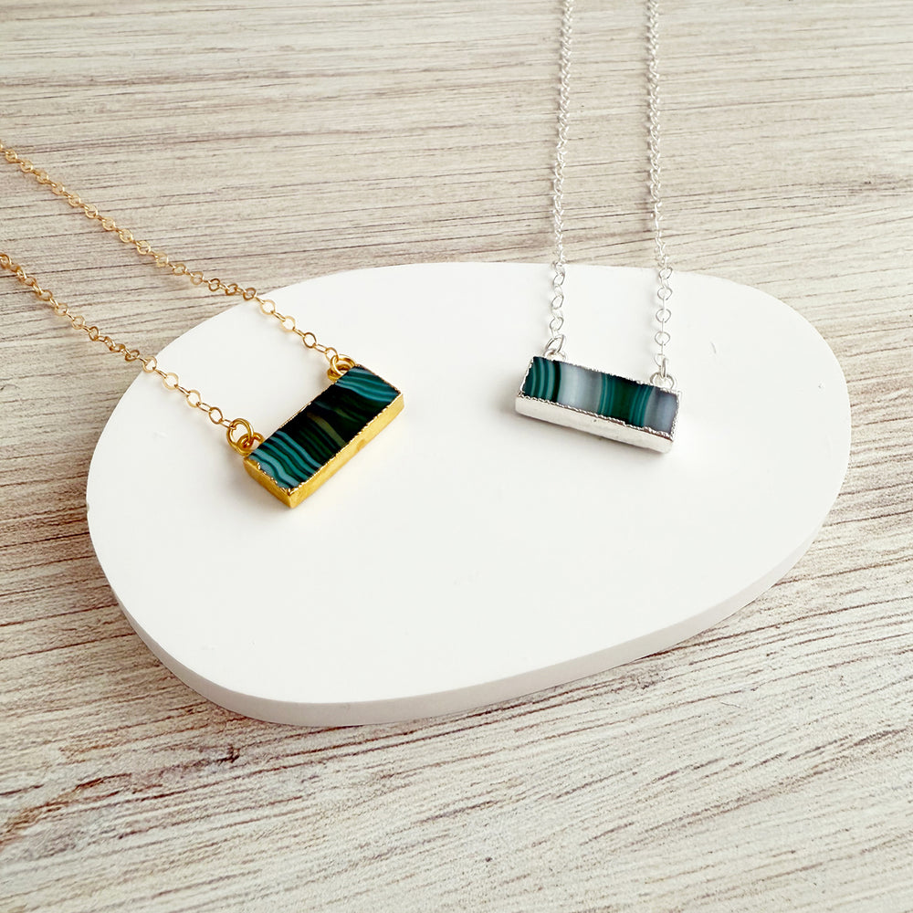 No two are ever the same. The Botswana Agate Bar Necklace features a one-of-a-kind stone with rich banding and natural color variation, ranging from earthy neutrals to soft greens and translucent tones. Each piece is unique, making your necklace truly yours.