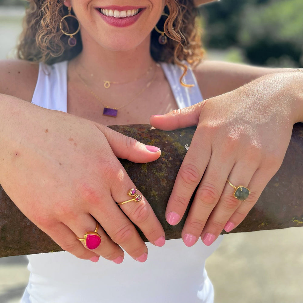 Double Triangle Stone Wrap Ring in Labradorite